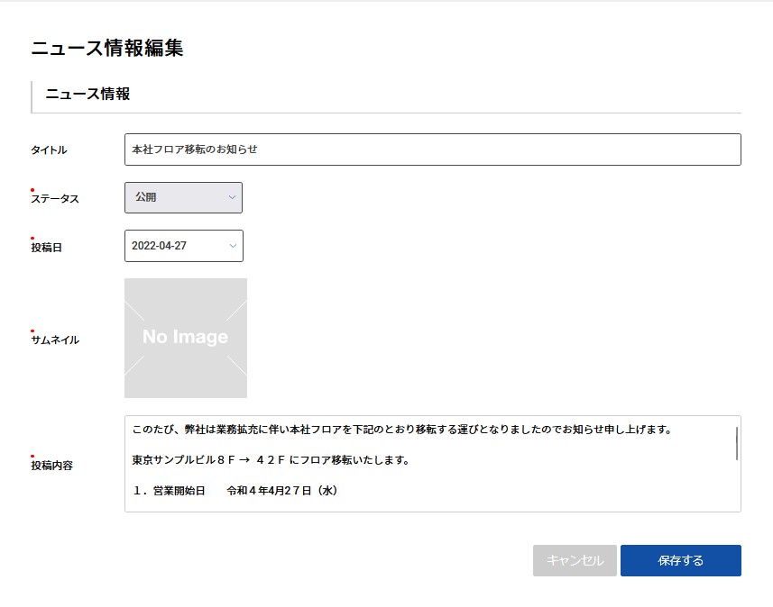 タイトル・・・作成したニュースのタイトルです。