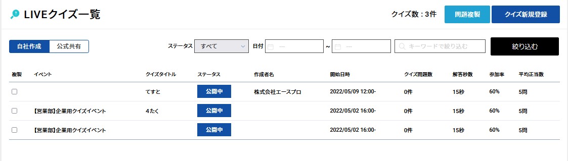 会場に集まるということをせずとも、ライブ配信を見ながらクイズを進めることができるので人数を選ばずにクイズをすることができます。